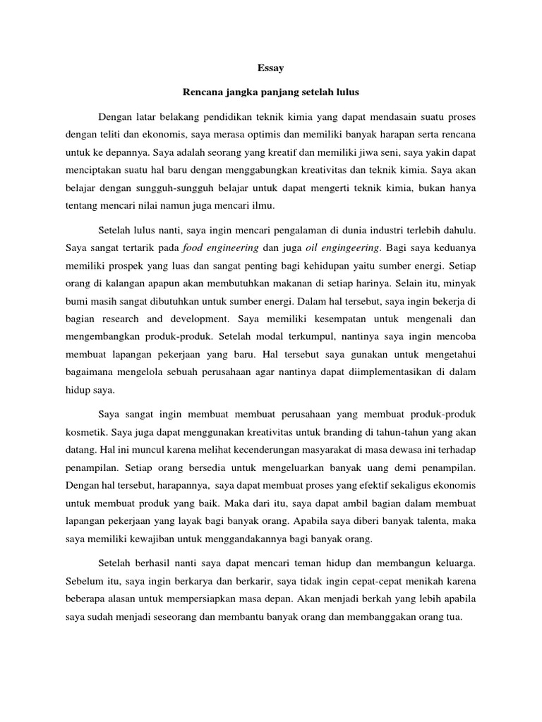 Contoh essay rencana setelah lulus kuliah surat lamaran ker.